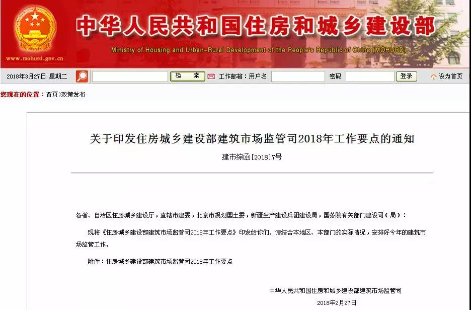 住房城鄉(xiāng)建設(shè)部建筑市場監(jiān)管司2018年工作要點(diǎn)